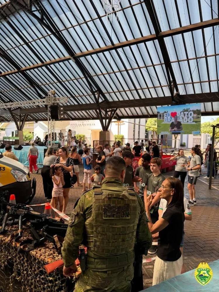 Durante a ação, policiais militares do Pelotão de Operações com Cães e do Pelotão COBRA realizaram exposição de equipamentos, armamentos, viaturas e demais recursos utilizados nas atividades de patrulhamento e repressão ao crime nas regiões de fronteira. O público que visitou o espaço pôde conhecer de perto as ferramentas operacionais empregadas pela corporação no dia a dia.