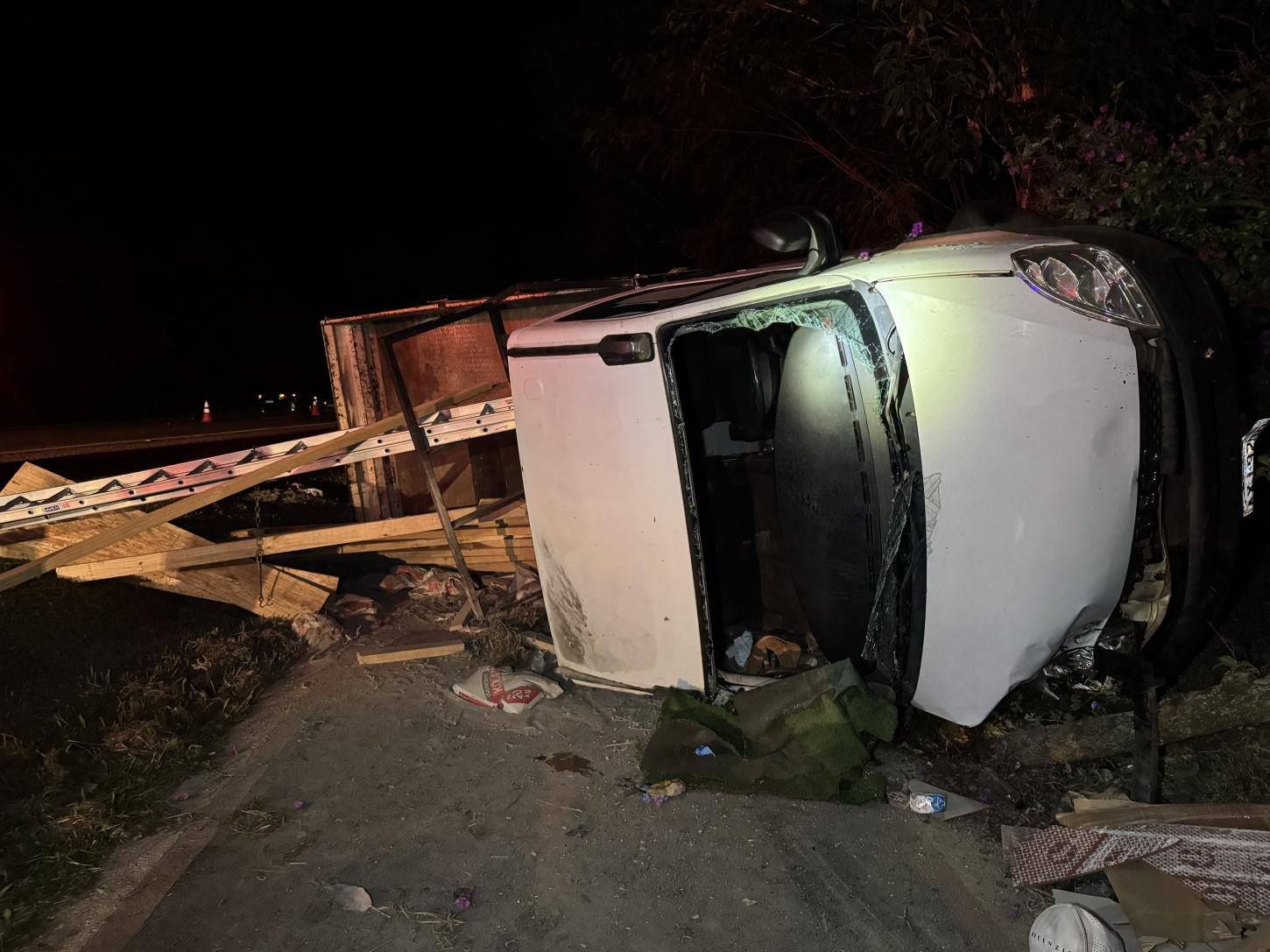 Caminhão com placas de Toledo tomba e duas pessoas ficam feridas