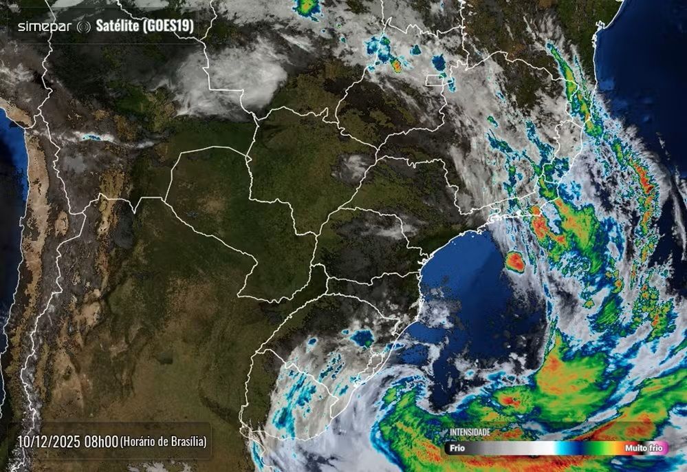 "Simultaneamente ao afastamento do continente, o centro de baixa pressão do ciclone está se intensificando, com os valores internos ficando ainda mais reduzidos. Como resultado, sobre o Paraná, as chances de chuvas diminuem, enquanto as rajadas de vento provenientes do quadrante oeste aumentam expressivamente e de maneira persistente ao longo desta quarta-feira, devido ao acentuado gradiente de pressão entre o continente e o sistema ciclônico", explica a meteorologista Júlia Crepaldi Munhoz.
