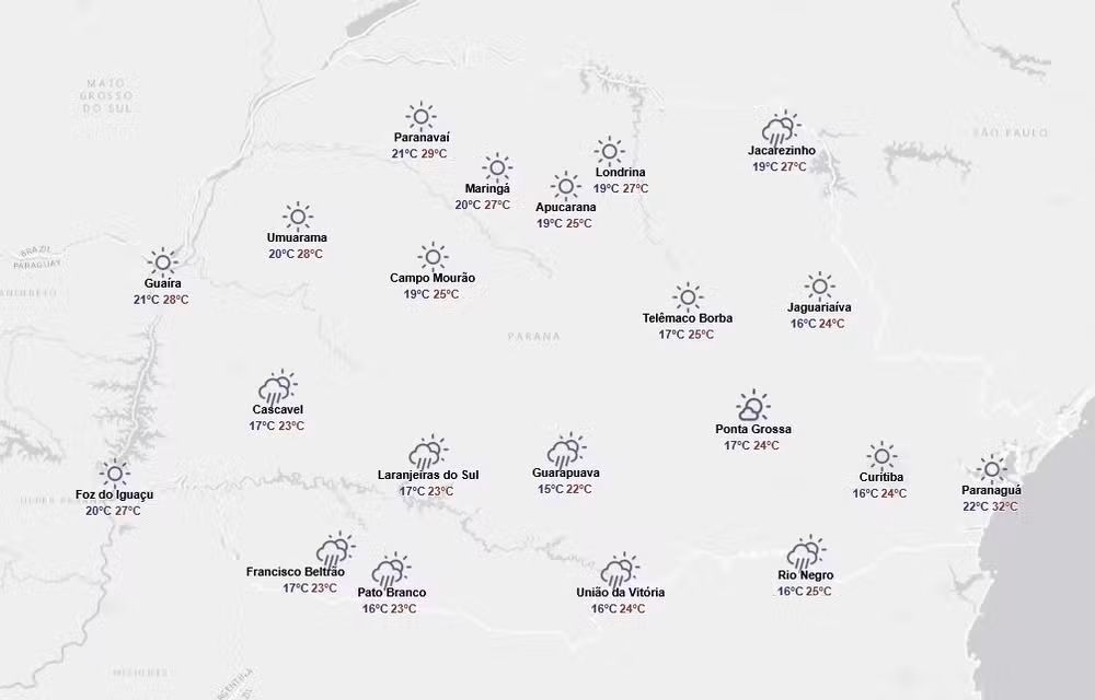 ⛈️ Previsão do tempo por região para o Paraná