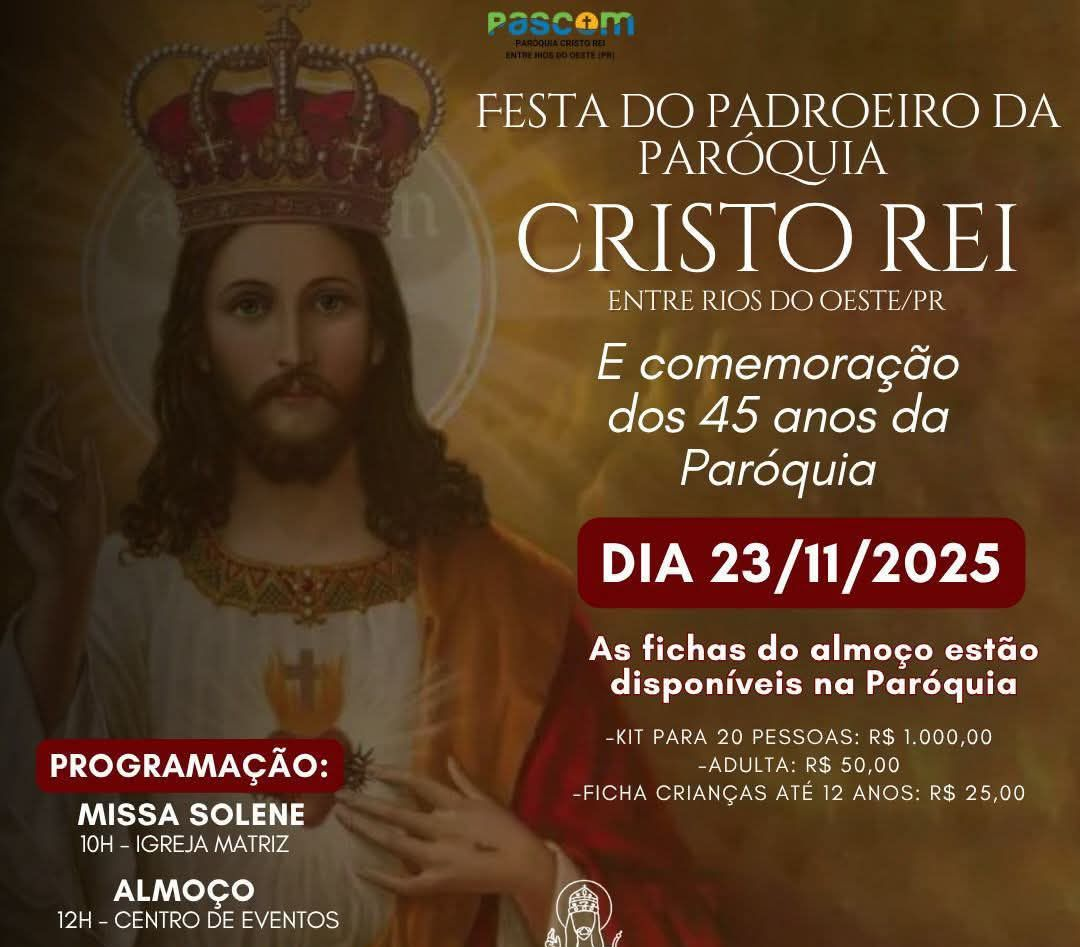 A Paróquia Cristo Rei realiza a Festa do Padroeiro 2025, celebrando 45 anos de presença e missão junto à comunidade entrerriense.