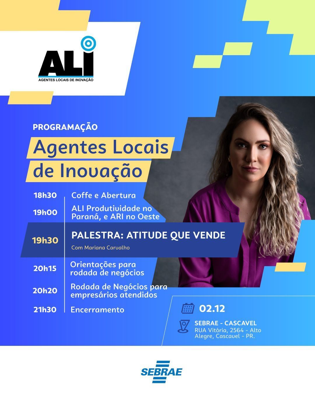 Palestra especial: “Atitude que Vende”, com Mariana Carvalho, uma conversa inspiradora sobre o poder da atitude para impulsionar resultados! E mais: rodada de negócios, networking e muito aprendizado para fechar o ciclo com chave de ouro.