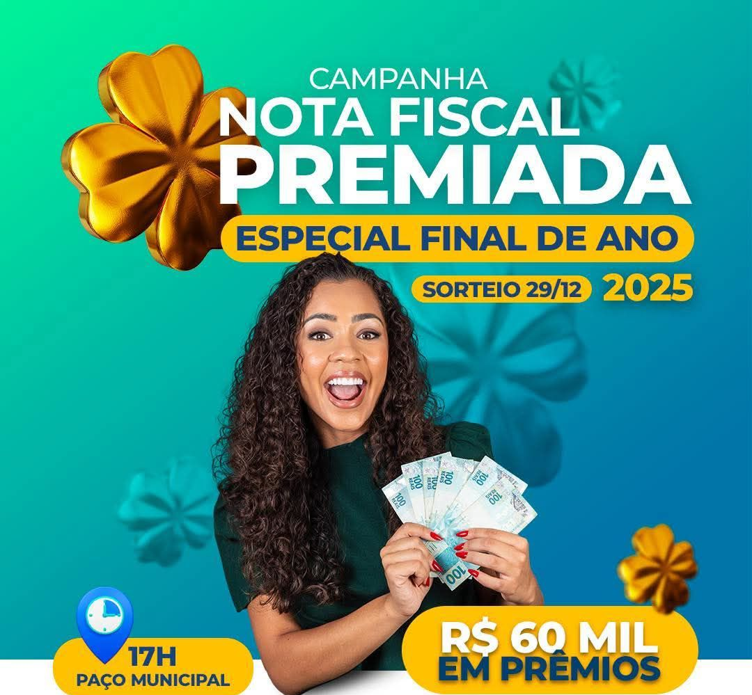 O sorteio acontece no dia 29 de dezembro às 17h em frente ao Paço Municipal.