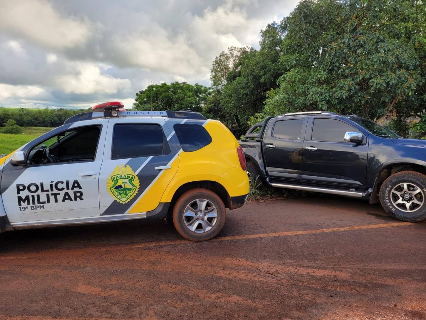 A caminhonete foi encontrada ainda ligada.