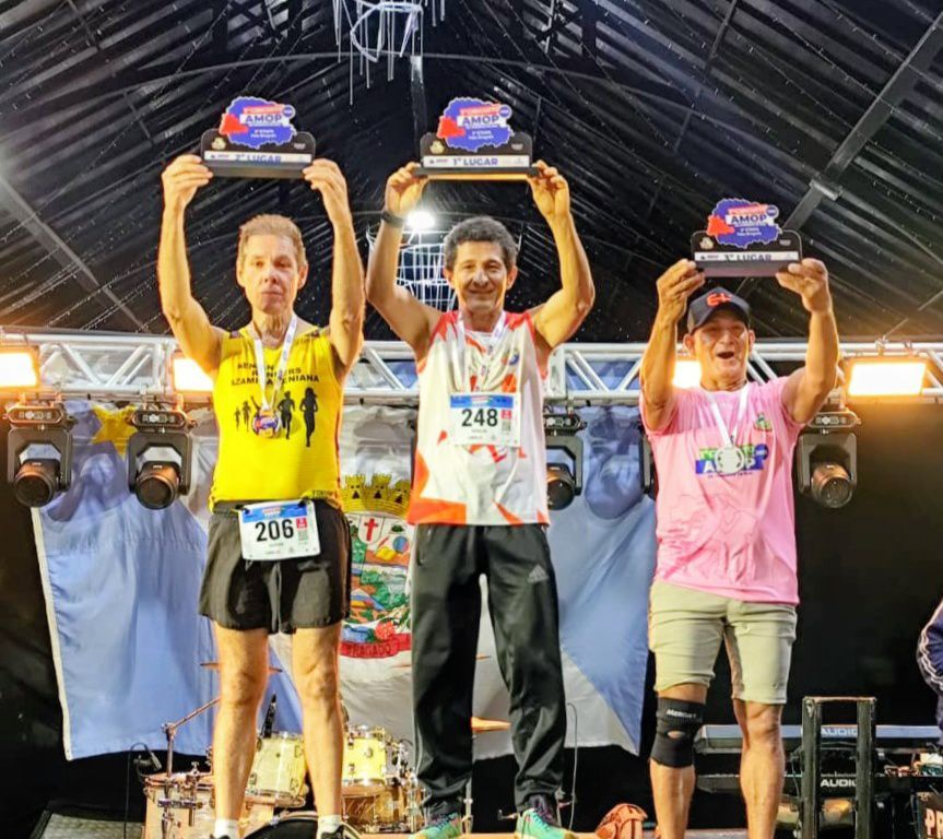 Premiação sendo entregue pelo prefeito Jair Bokorni, vice-prefeito Robinho e o secretário de Esportes, Lazer e Turismo, Alex Spada, que agradeceu a equipe do Batalhão de Polícia de Fronteira (BPFron), pelo apoio na largada da prova.