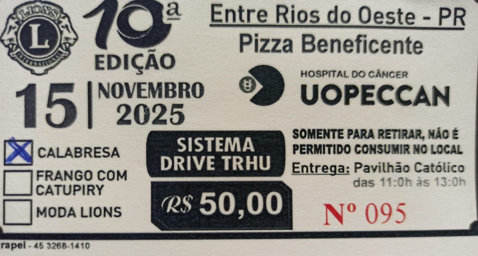 Lions Clube Entre Rios promove a 10ª Edição da Pizza Beneficente neste sábado (15)