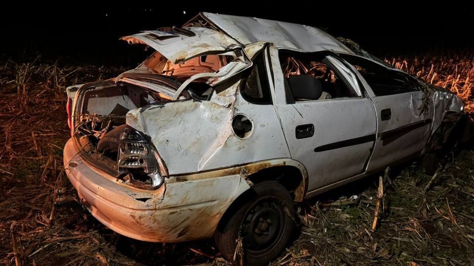 Tentativa de abordagem da Polícia Militar terminou em perseguição e capotamento na noite desta quarta-feira (30) em Nova Santa Rosa. O motorista de Corsa Sedan branco desobedeceu à ordem de parada e fugiu em alta velocidade ao ser avistado nas proximidades do Lago Municipal.