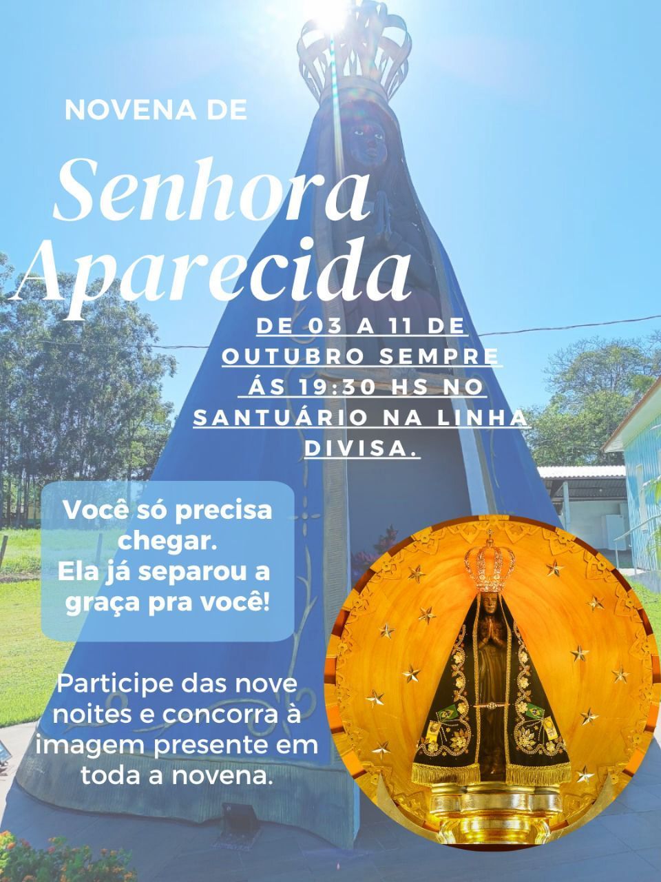 A novena acontecerá entre os dias 3 e 11 de outubro, no Santuário da Linha Divisa, Entre Rios do Oeste.