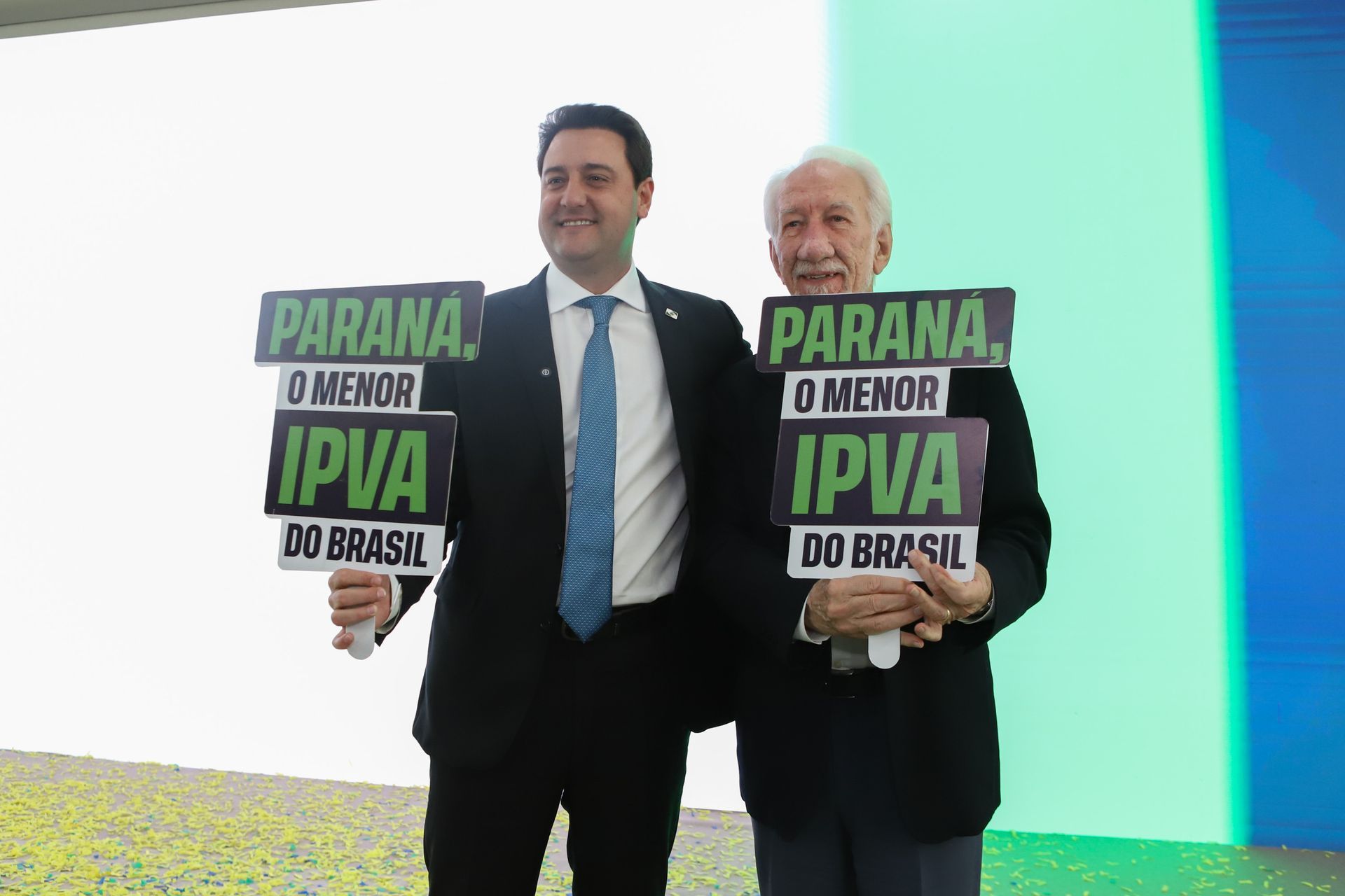 Agora é lei ( nº 22.645/2025 ): o Paraná tem o menor IPVA do Brasil. A nova alíquota do Imposto sobre a Propriedade de Veículos Automotores foi reduzida de 3,5% para 1,9% do valor venal de automóveis, motocicletas e caminhonetes nesta terça-feira (23) após a sanção pelo governador Carlos Massa Ratinho Junior, em Curitiba. A medida beneficia cerca de 3,4 milhões de proprietários de veículos em todo o Estado, que pagarão 45% a menos de imposto anualmente.