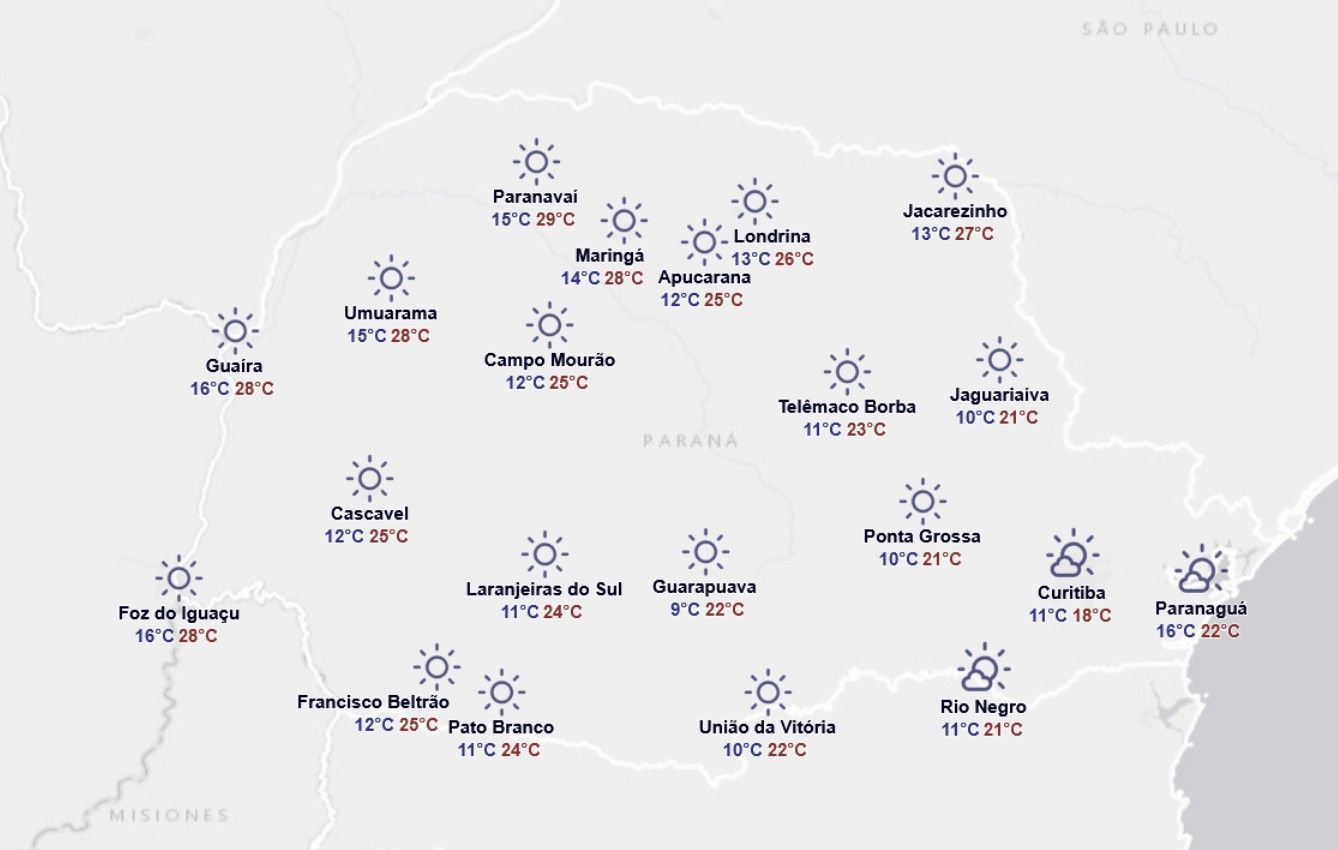 Veja, abaixo, a previsão do tempo para o Paraná - 22.10.2025: