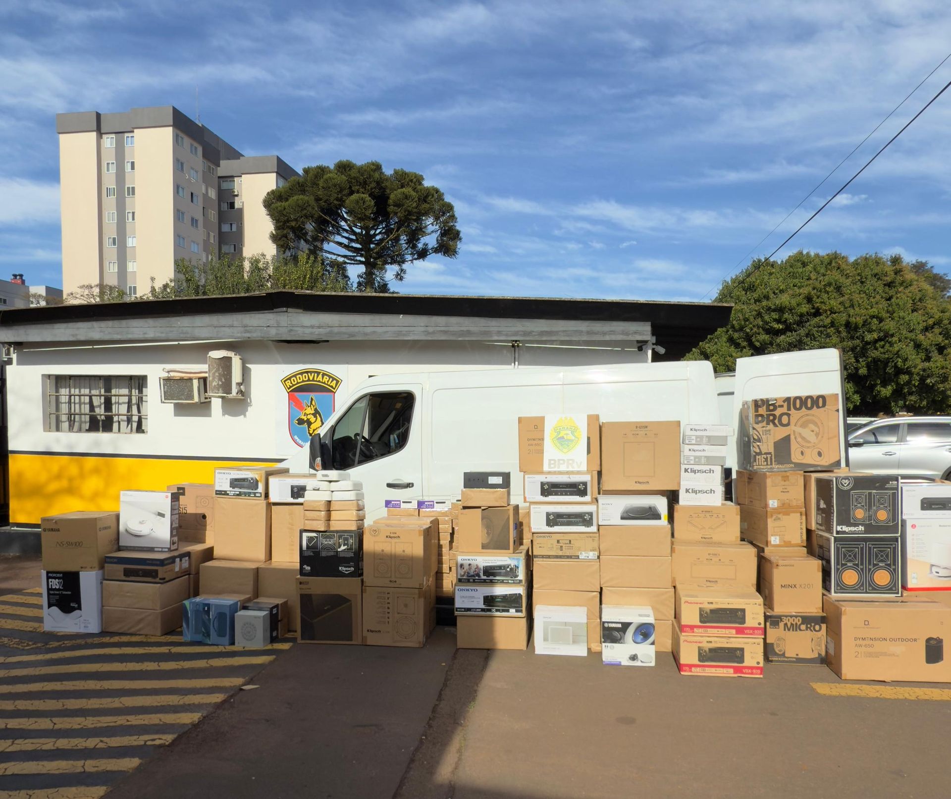 A Polícia Rodoviária Estadual apreendeu uma carga de eletrônicos avaliada em cerca de R$ 1 milhão na manhã desta quinta-feira (28), durante fiscalização na PR-317, em Toledo.