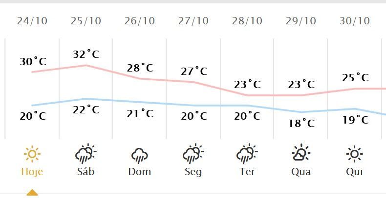 No sábado (25), as temperaturas se elevam em todas as regiões paranaenses, atingindo pelo menos os 25 °C.