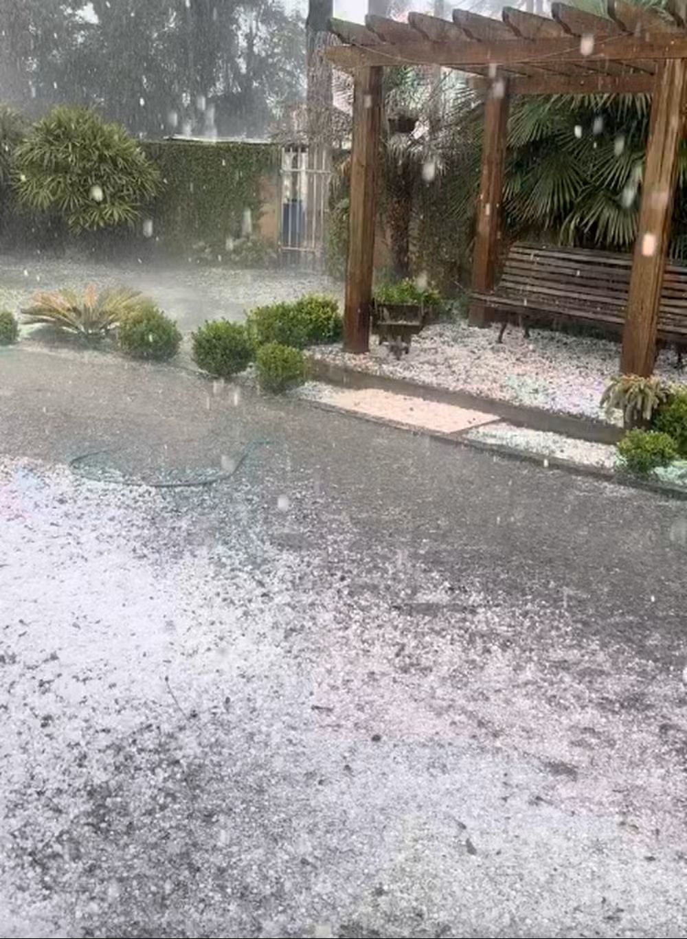 Temporal quebra telhados e enche quintais com pedras de gelo; confira previsão do tempo