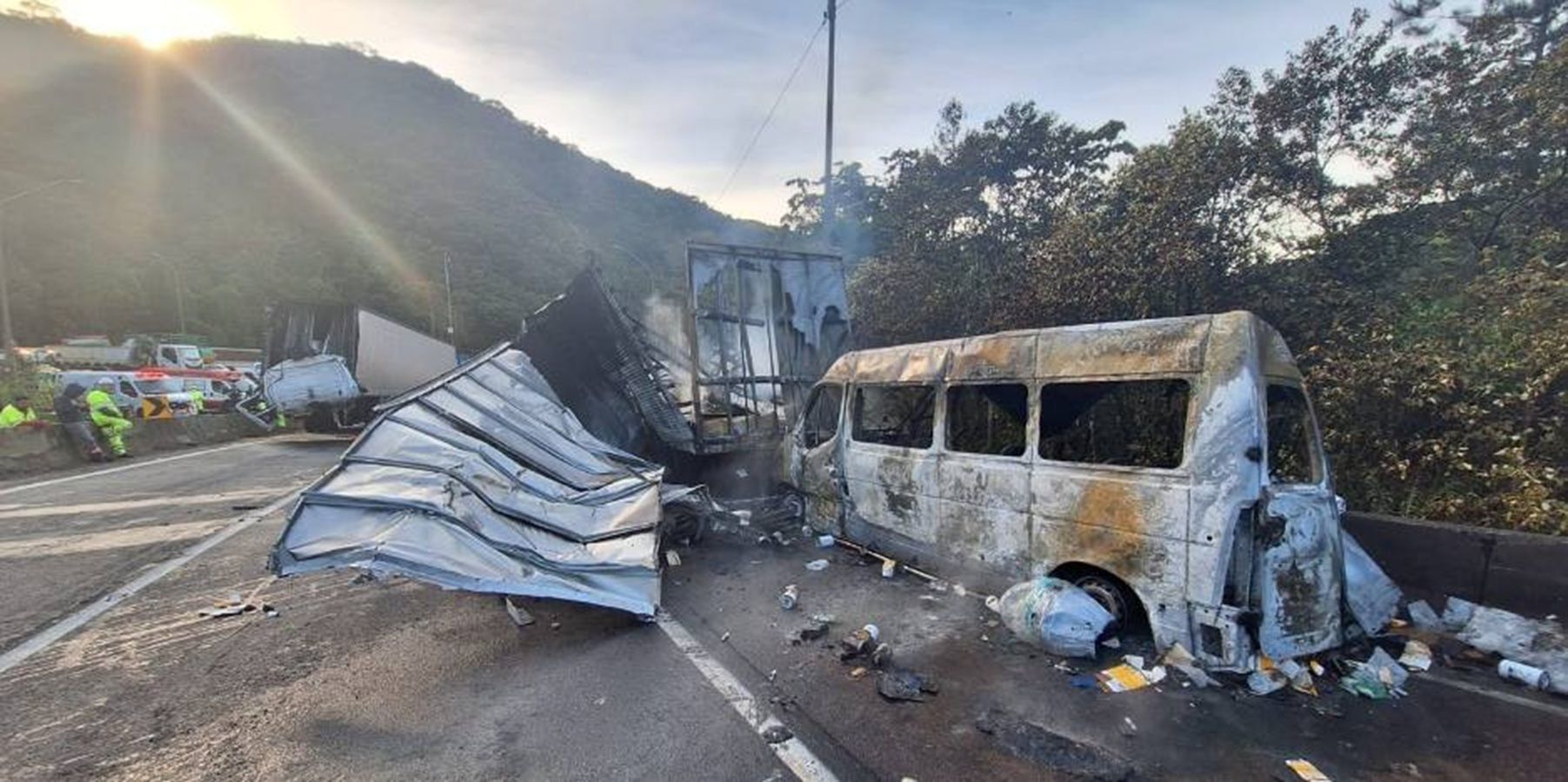 Van que pegou fogo após engavetamento com caminhões no Paraná levava família para passeio bate-volta no Beto Carrero