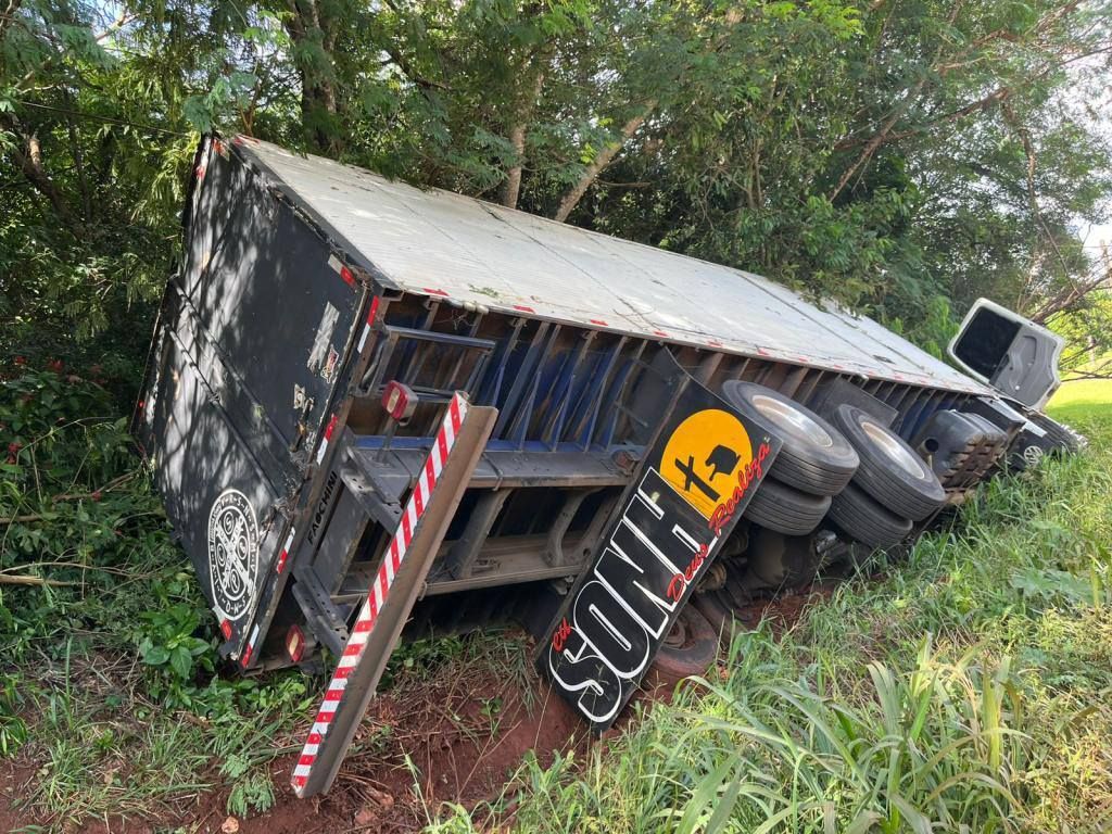 O veículo transportava farinha, carregada em Marechal Cândido Rondon, com destino final ao estado de São Paulo.