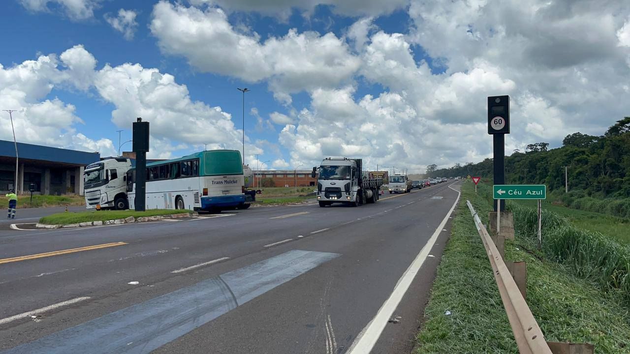 Acidente de trânsito entre carreta e um ônibus ocorreu na tarde desta segunda-feira (05), na BR-277, em Céu Azul, no Oeste do Paraná.