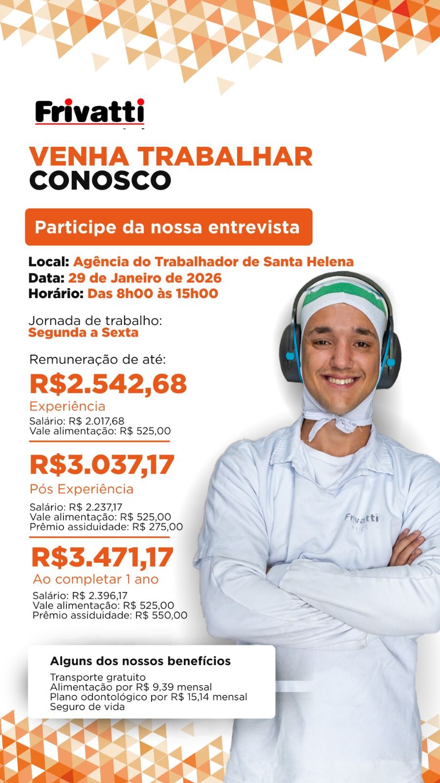MAIOR DE 18 ANOS, NÃO NECESSITA EXPERIÊNCIA - ENTREVISTAS NA AGÊNCIA DO TRABALHADOR, DIA 29/01/2026 - QUINTA-FEIRA DAS 08H30 ÀS 15H.