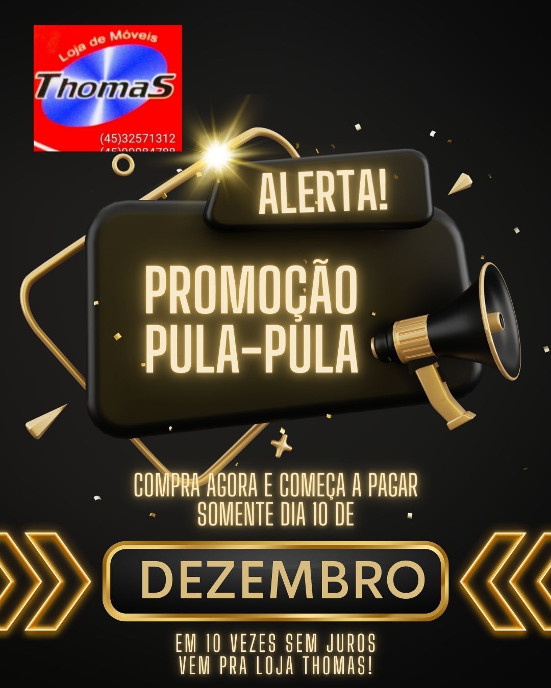 Loja de Móveis Thomas, Promoção Pula-Pula: Compra agora e começa a pagar somente dia 10 de dezembro