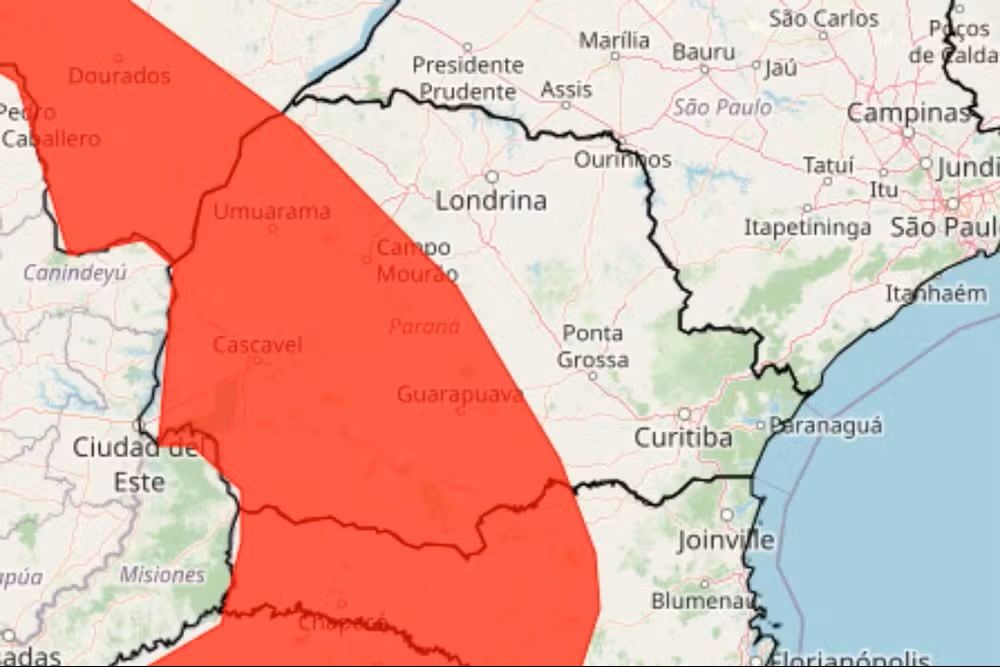 Segundo o Inmet, o aviso abrange as regiões Noroeste, Norte Central, Oeste, Sudeste e Centro-Sul paranaense.